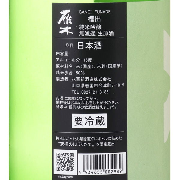 雁木 純米吟醸 FUNADE 槽出 無濾過生原酒