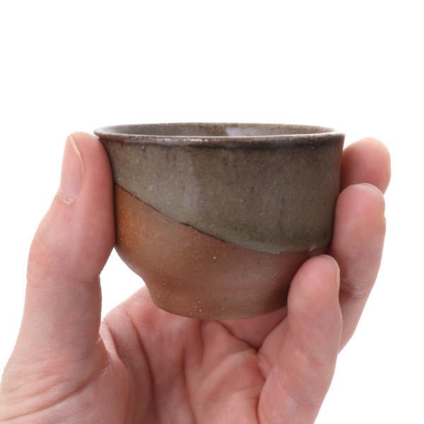 焼き締めの素朴さと釉薬の使いやすさを掛け合わせた「焼き締めと釉薬のコラボ」が楽しめるぐい呑です。深みのある独特の風合いがお洒落で、安心感も感じられます。
