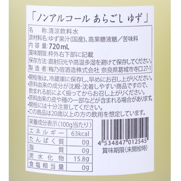 梅乃宿 ノンアルコール あらごしゆず / 梅乃宿酒造