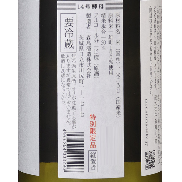森嶋 純米大吟醸 雄町14号酵母 生原酒