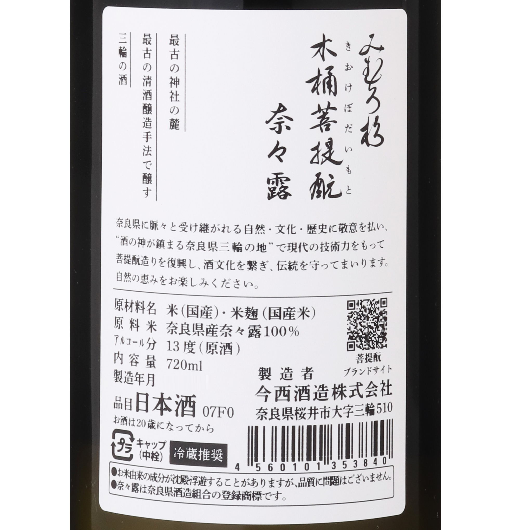 奈良県が10年以上の長い歳月をかけて開発した新しい酒造好適米「奈々露」で醸した第2弾。奈々露は、山田錦と露葉風の交配によって誕生した酒米です。その血統がもたらす中庸なふくらみと旨味、そして長く続くキレのある余韻をしっかりと引き出しました。そこに、菩提もとがもたらす重層的な複雑味、吉野杉の木桶が生み出す繊細なタンニンと滑らかな渋味が重なり合い、唯一無二の味わいへと昇華しました。注意事項