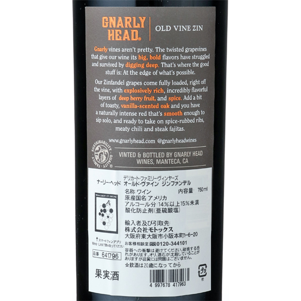 全米人気No.1のジンファンデル。ブラックチェリーやラズベリーのアロマにチョコレート香。ジューシーな完熟果実の甘味と複雑なスパイス香を持ち、程よいバニラ香が広がります。