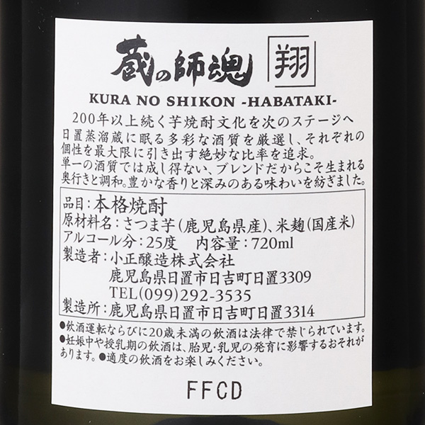 蔵の師魂 翔 はばたき 芋焼酎 25度 / 小正醸造