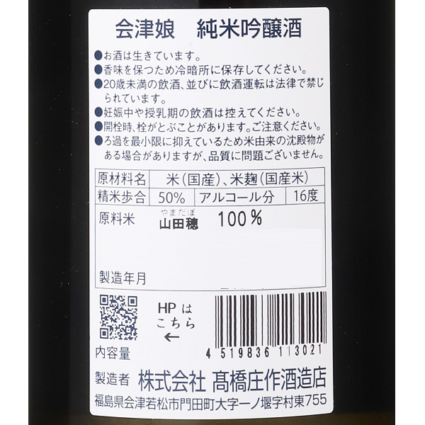 ひとつの田んぼから ひとつの商品をつくる2018年、会津若松市は戊辰150年を迎えました。高橋庄作酒造店が酒造りをはじめたのは明治はじめ、戊辰戦争後まもなくのことと伝え聞いています。以後今日まで、この会津と風と土の薫りを味わいのなかに表現したいと『土産土法(どさんどほう)の酒造り』に取り組んできました。会津娘では、会津の酒造好適米だけ造る純米酒を基本として2019年より、「一つの田んぼでとれた米ごとに仕込む純米吟醸酒」を酒造りの中心に据えて、圃場限定会津娘『穣(じょう)』として、田んぼごと季節ごとに蔵出しをしています。