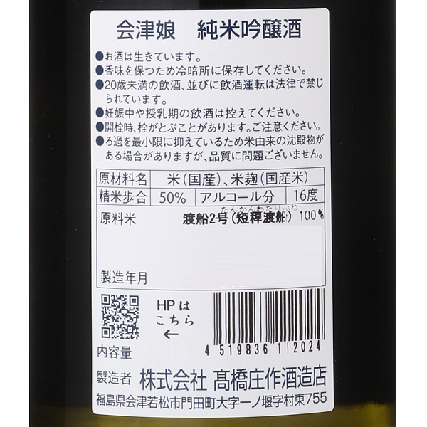 ひとつの田んぼから ひとつの商品をつくる2018年、会津若松市は戊辰150年を迎えました。高橋庄作酒造店が酒造りをはじめたのは明治はじめ、戊辰戦争後まもなくのことと伝え聞いています。以後今日まで、この会津と風と土の薫りを味わいのなかに表現したいと『土産土法(どさんどほう)の酒造り』に取り組んできました。会津娘では、会津の酒造好適米だけ造る純米酒を基本として2019年より、「一つの田んぼでとれた米ごとに仕込む純米吟醸酒」を酒造りの中心に据えて、圃場限定会津娘『穣(じょう)』として、田んぼごと季節ごとに蔵出しをしています。