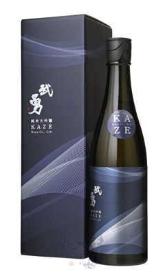 武勇の新しいフラッグシップ商品。ここから新しい風を起こせるようにとの願いから「KAZE」と名付けられました。庫県産山田錦を使用した爽やかな香りの純米大吟醸です。受賞歴