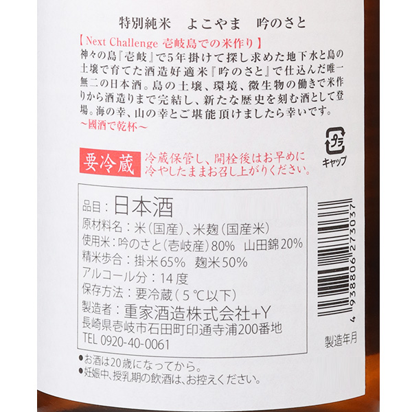 神々の島「壱岐」で5年もの歳月をかけて探し求めた地下水と島の土壌で育てた酒造好適米「吟のさと」で仕込んだ唯一無二の日本酒。島の土壌、環境、微生物の働きで米作りから酒造りまで完結し、新たな歴史を刻む「島の酒」としてついにリリースとなりました。壱岐の大地を、恵みを感じていただければ幸いです。お好きな海の幸、山の幸でお楽しみください。蔵紹介