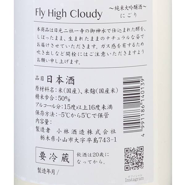 鳳凰美田 純米大吟醸 ニゴリ生酒 ミクマリ FLY HIGH CLOUDY