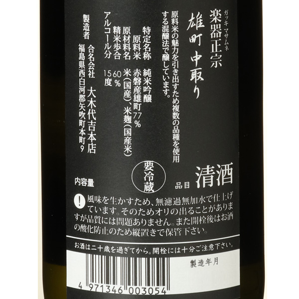 【予約商品】9月26日以降 出荷予定 楽器正宗 純米吟醸 雄町 中取り