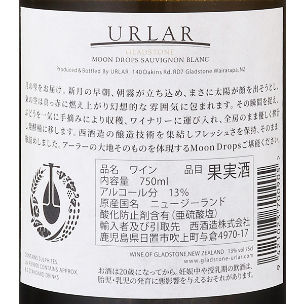 月のリズムが育んだ、今だけの特別な味わいニュージーランド北島・グラッドストーンの冷涼な地に広がるURLARワイナリー。昼夜の寒暖差が大きく、厚い果皮と豊かな酸を備えた高品質なブドウが育まれます。このワインは、自然と共生する哲学のもと、ビオディナミ農法で丁寧に育てられたソーヴィニヨン・ブラン100%を使用しています。