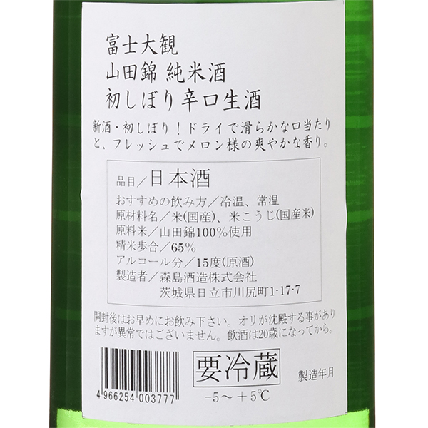 富士大観 辛口純米 山田錦 初しぼり生酒