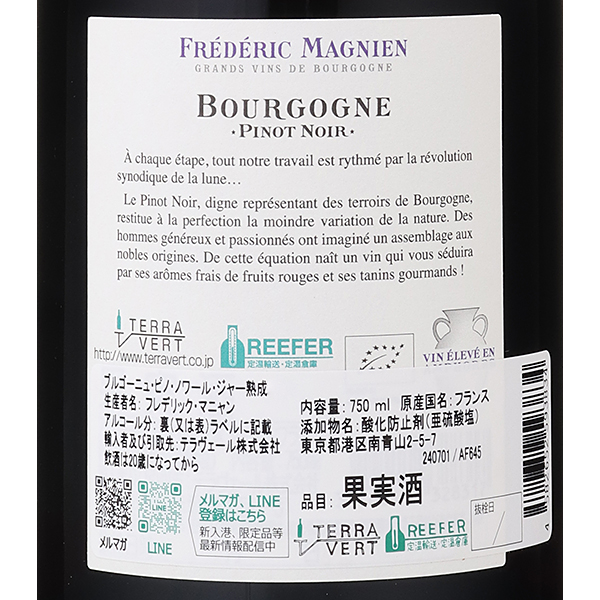 ブルゴーニュ・ピノ・ノワール・ジャー熟成 2022 / フレデリック・マニャン