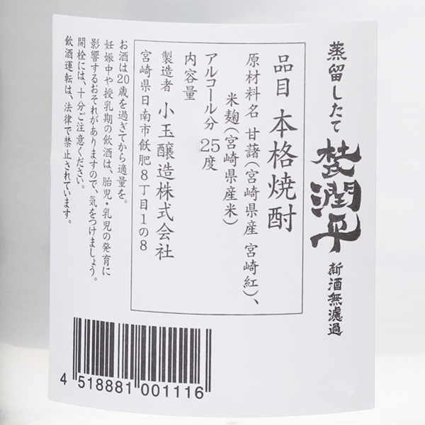 杜氏潤平 新酒 蒸留したて 宮崎紅 芋焼酎25度 / 小玉醸造
