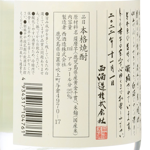吉兆宝山 初蒸無濾過 2025年謹製 芋焼酎 25度 / 西酒造