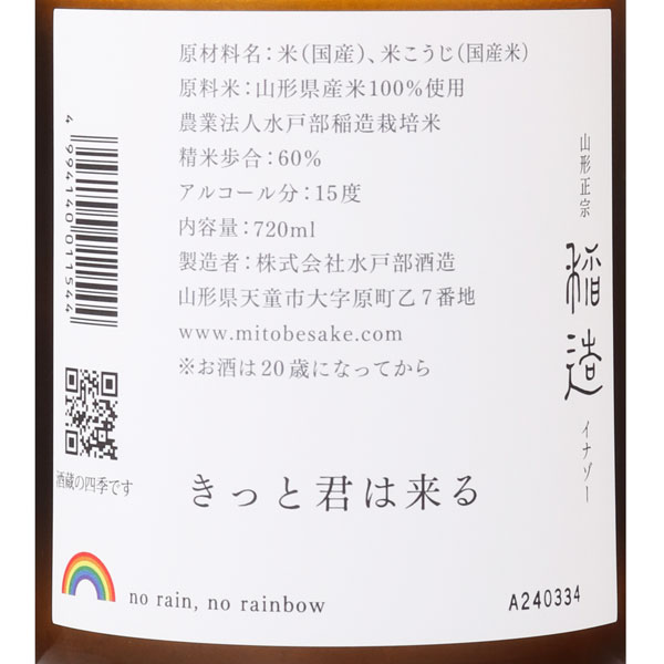 オーソドックスな造りである定番酒 稲造とは別に、「人生は、遊びだ。」をテーマに新しい農法、新しい醸造機械を導入し実験的な商品や遊び心のある商品を稲造の季節限定商品として展開しています。稲造の季節品の中でも人気のクリスマスバージョン。ややガス感ある口当たりが爽やかで透明感のある味わいに稲造らしいドライなフィニッシュになっている一本です。かわいいラベルもクリスマス気分をあげてくれます。クリスマスパーティーの乾杯にどうぞ!蔵紹介