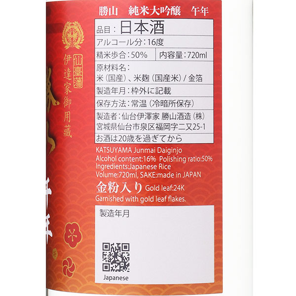 勝山 純米大吟醸 午年 2026年 干支ラベル 金粉入り