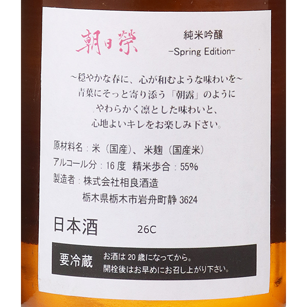 栃木県産ひとごこちを使用し、穏やかな春に心が和むように、やわらかく凛とした味わいと、心地よいキレの表現を目指したお酒です。蔵紹介