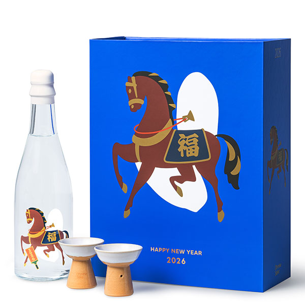 2026年の干支「午」をモチーフにしたデザインを施した、「大嶺 2粒 山田錦」をベースに醸造した限定酒と、江戸時代初期より続く萩焼の名門窯元「田原陶兵衛工房」に制作を依頼した馬上杯2脚を組み合わせた、特別なセットです。新年の幕開けを祝うひとときにぴったりな華やかで縁起のいいデザインとなっています。山口県最高峰の山田錦を使用し、石灰岩地帯で磨かれた湧水を仕込み水に醸すことで、穀物の豊潤さと透き通る甘さ、多層にわたるミネラル感を表現した一本です。開栓とともに放たれるマスカットやパイン、白桃のような華やかな果実香と、口中に広がる優美な余韻をお楽しみください。