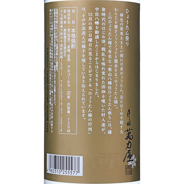 ほんのりお湯割り 特蒸泰明 金箔入り 麦焼酎 22度 / 藤居醸造
