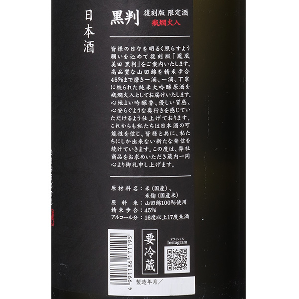 鳳凰美田 黒判 純米大吟醸原酒 生もと 火入