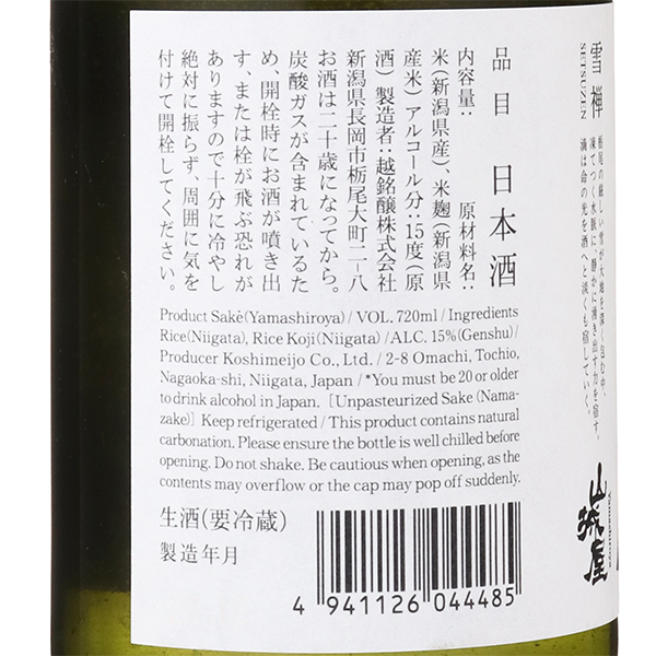 山城屋初となるおりがらみ生酒。淡雪のように漂うオリは、米由来の優しい旨味と繊細な口当たりをもたらし、一方で雑味を排したクリアな心、生酒ならではの凛とした張りが余韻を引き締めます。柔らかな旨みと鋭いキレが共存する、冬限定の”ネオ淡麗”モデルです。注意事項