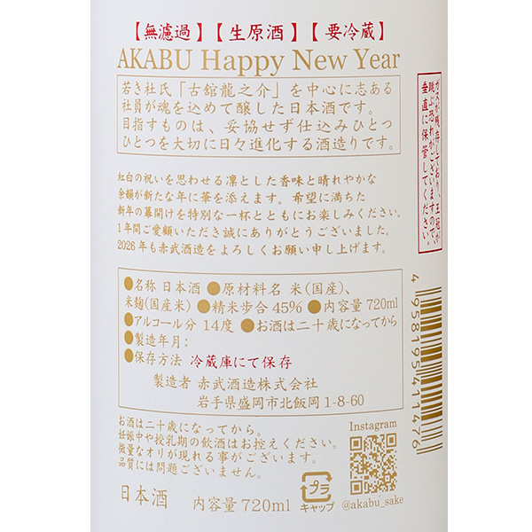 赤武酒造からみなさまへ、新しい年のスタートをお届けいたします!紅白の祝いを思わせる凛とした香味と、晴れやかな余韻が新たな年に華を添えます。希望に満ちた新年の幕開けを特別な一杯とともにお楽しみください。注意事項