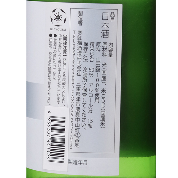 創業以来磨いてきた技の集大成安政元年、1854年創業。蔵があるのは平安の時代から米どころとして知られる伊勢の国、三重県津市です。街おこしのため、三重大学の学生と共に醸すお酒が話題となり、カルピスとのコラボ梅酒、「ニューホワイト」で人気となりました。梅酒で有名な蔵でしたが、「旨い日本酒が造りたい」と2010年、東一を醸す佐賀県の五町田酒造勝木慶一郎さんに酒造りを学び、蔵に戻ると日本酒の酒質が一気に向上。その名に関する寒紅梅の花のごとく華麗なお酒に仕上がりました。進化する三重県の「寒紅梅」マストドリンクの1本です。