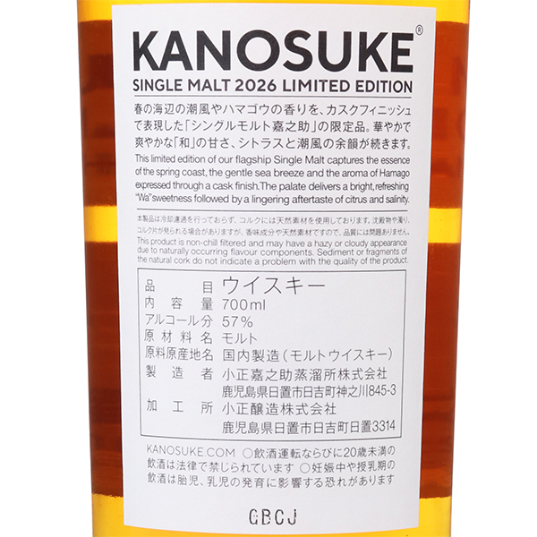 嘉之助 シングルモルト 2026 リミティッドエディション 57度 / 小正醸造 嘉之助蒸溜所
