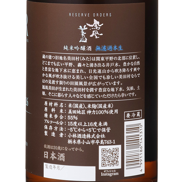 鳳凰美田 リザーヴ・オーダー神力 純吟 生モト 無濾過生
