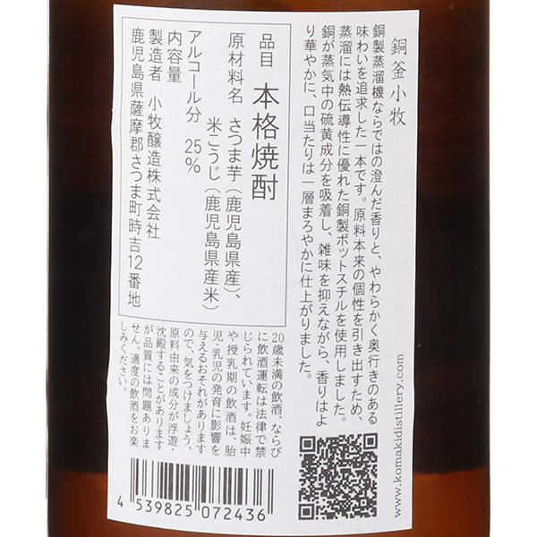 銅釜小牧 芋焼酎 25度 / 小牧醸造