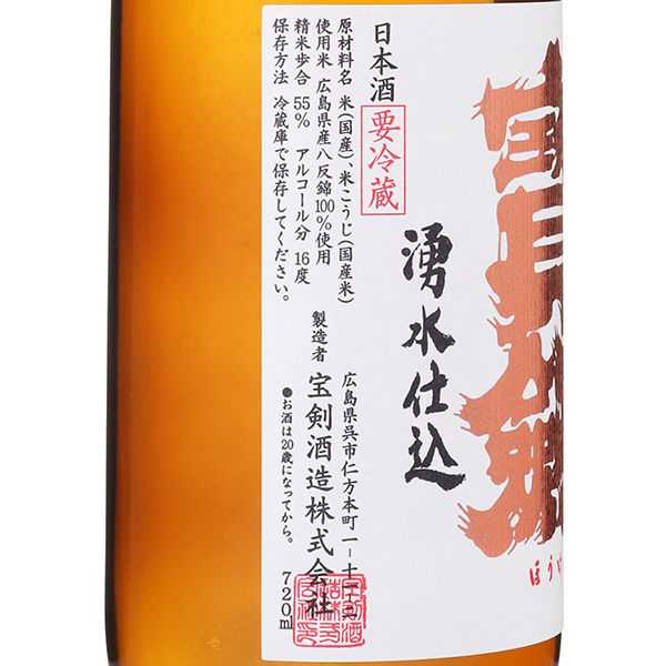 これまで純米酒で醸していた「白ラベル」を、今期から造りを変え純米吟醸酒で醸しています。新しい白ラベルは、広島県が開発した酵母を使用し、十数年ぶりに仕込配合も変更。いつもの宝剣より丸いボディーを感じる、穏やかで芳醇な香味をお楽しみ頂ける日本酒となっています。蔵紹介