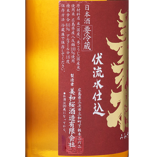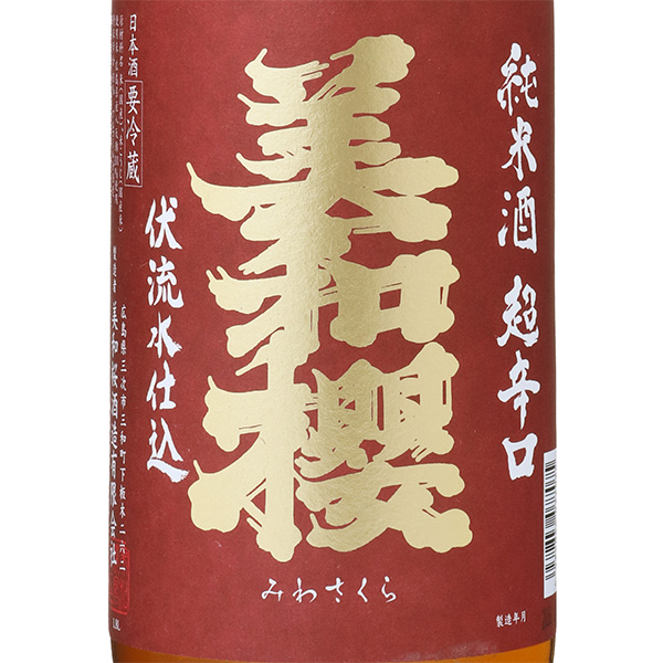 酒蔵を構える広島県三次市三和町は、澄んだ空気と清らかな水に恵まれた「八反錦」「八反」「千本錦」といった酒造好適米のふるさとです。この地で蔵元自らも米作りから手掛けることにより、「より良い品質の酒米、より上質の酒造り」にいつも情熱を傾けてきました。自社精米でお米を磨き抜き、しっかりとした麹を造る。味と香りのバランスを意識しながら、酒米の旨味を最大限に引き出すのが美和桜の目指す酒造りです。広島県の中でも特に親しくお付き合いをしている宝剣酒造の土井さんと、「もっと旨い日本酒を醸せないか」と意見交換をしてきた中で「美和桜の純米を超辛口に仕上げて、宝剣 純米 超辛口と同じラベルデザインで張り付けてみてはどうか」と提案が交わされたそうです。この土井さんの熱い提案に感激した美和桜従業員一同は、「必ず期待に応える」という強い決意で今季の仕込みに挑みました。宝剣のラベルを纏うに相応しい鋭いキレを持ちながらも、美和桜が大切にしてきた米の旨味がしっかりと息づいています。