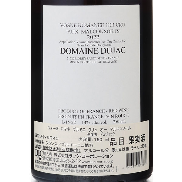 【SALE】ヴォーヌ・ロマネ・1er・マルコンソール 2022 / デュジャック
