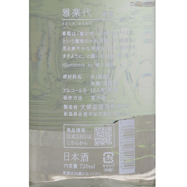 佐渡の地で天領盃酒造が目指すスタイルは、「新しい新潟淡麗」。佐渡のやわらかな天然水と農家さんの努力が詰まった減農薬米によって造られた、キレイで軽くフレッシュなお酒――雅楽代を通じ、時代の変化に合わせてアップデートした「新しい新潟淡麗」を表現していきたいと、日々酒造りを行っています。
