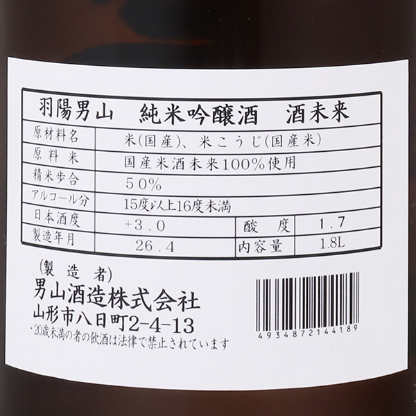 酒造り一筋、200年1789年(寛政元年)に創業。「地元に支持されるまじめな酒造り」を基本とし、優れた原料の選定、技術の研鑽、設備の充実などに努力しています。200年以上に渡り酒造り一筋に歩んできた男山酒造。代表銘柄の羽陽男山は、地元を始め全国の日本酒ファンから愛され続け、全国新酒鑑評会でも毎年の様に金賞を受賞しています。蔵王山系の伏流水で醸し出す酒は、男山の名にふさわしくすっきりとした辛口で飲むほどにキレのよいおいしいお酒です。