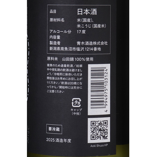 商品名である「漆黒」は漆を塗ったような艶を感じる黒色です。深みと光沢のある高級感溢れる黒で、酒質を表現しています。華やかな吟醸香、山田錦特有のふくよかな旨みとキレとがお楽しみいただける、淡麗旨口酒質の生原酒です。蔵紹介