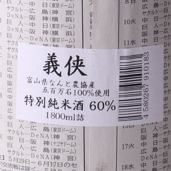 義侠といえば山田錦ですが、南砺農協の取り組みに共感して五百万石で醸した純米酒です。ふくらみのある米の甘い香りに、芳醇なコクが広がり後口には五百万石らしいほろ苦さがあります。蔵紹介