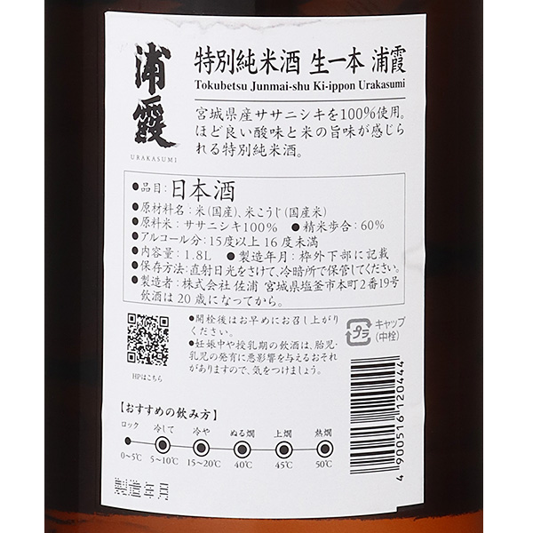 宮城を代表する銘醸蔵 塩釜の豊かな食文化に寄り添う酒享保9年(1724年)創業。美しい風情が多くの歌に詠まれ、歴史的にも食文化的にも恵まれた長い歴史の息づく港町塩竃に蔵はあります。全国新酒鑑評会では全国屈指の金賞受賞歴を誇ります。伝統を大切にし、上品な"品格のある酒"を目指しています。日本酒が持つほど良い米の旨み、味と香りの調和のとれた、まろやかで上品な飲み飽きのしない味わいが浦霞の特長です。食中で活きる味わいで、特に塩釜の特産であるマグロや牡蠣には好相性です。