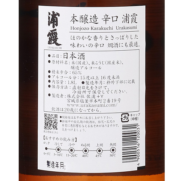 浦霞 辛口 本醸造