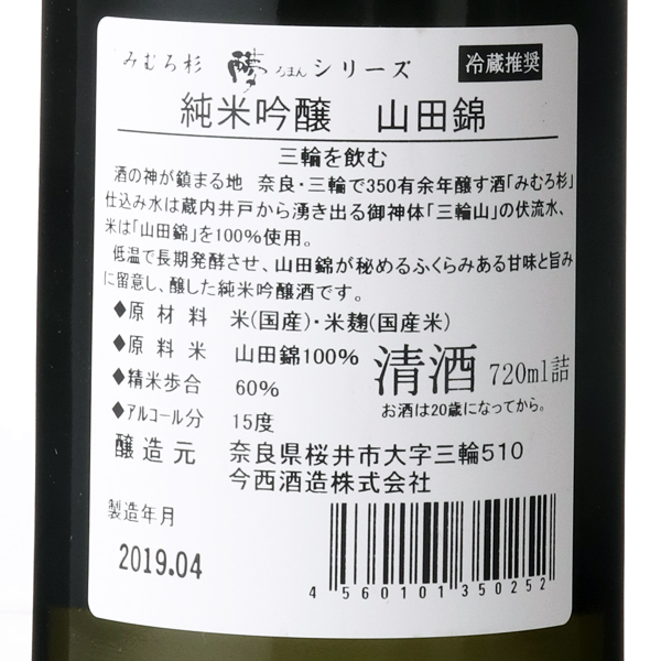 酒の神に見守られ醸されるお酒。酒の神が鎮まる日本最古の神社大神神社、その御神体である三輪山、日本最古の杜氏が祀られる活日神社のある三輪の地に蔵はあります。古の時代より深く結び付いてきた神、三輪、酒。その、他にはない歴史、風土、文化をバックボーンとして生まれたのがみむろ杉です。350年以上に渡って続くこの銘柄を現在支えるのは若手蔵元今西将之さんと、平均年齢20代の若いスタッフたち。