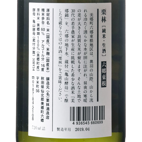 栗林(りつりん)…春霞を醸す栗林酒造店が、蔵のテロワール(美郷錦、蔵付酵母、六郷の水)をより深く、より明確な形にしようと、酒販店有志と共に立ち上げた銘柄です。奥羽山脈の麓、山間部の美郷町六郷東根は、山から田んぼに入る水温が低い為収穫量は少ないものの、良質の米ができると古くから言われてきました。ここの美郷錦が「栗林」六郷東根になります。