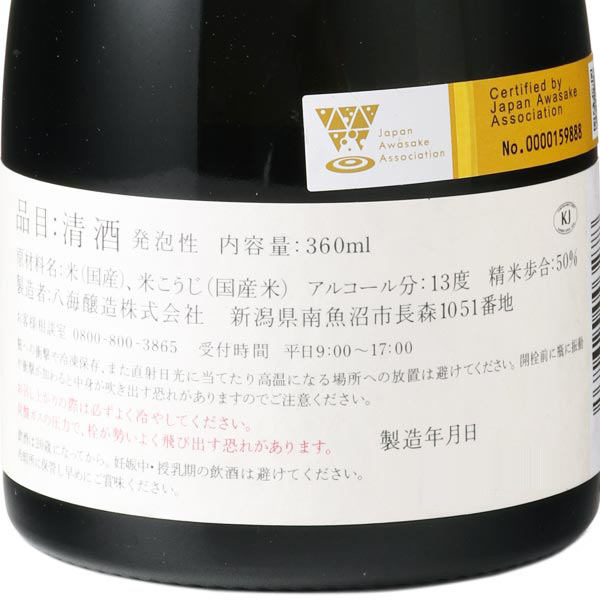 これからの、日本のスパークリング。醸造中の自然発酵した炭酸ガスによる、透明な日本酒です。グラスに注いだとき繊細な一筋泡が立つのが特徴でフルーティーな香りと上品な甘み、爽やかなスパークリングの口当たりをお楽しみいただけます。瓶内発酵による自然できめ細やかな泡立ち、軽やかですっきりとした口当たりは食前としても、和洋料理やデザートと合わせても楽しめます。awa酒協会が提唱する、ワンランク上の日本酒スパークリング基準を満たしています。注意事項