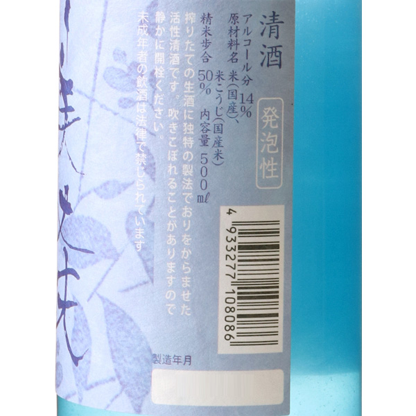 うすにごりは、搾りたての純米吟醸を独自の製法で瓶内発酵させたシャンパンタイプの微発泡酒です。青りんごのようなすっきりした、爽やかな風味です。注意事項