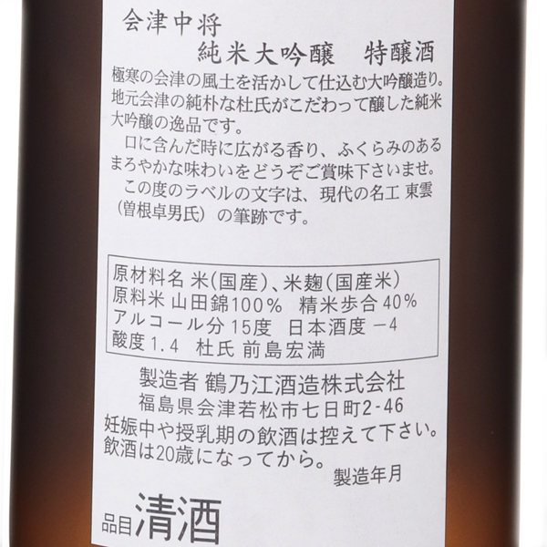 会津中将 純米大吟醸 特醸酒 *クール便のみ