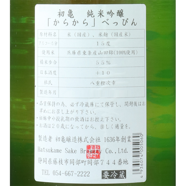初亀 純米吟醸 べっぴん 辛2 カラカラ