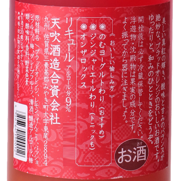 太陽神アポロンを商品名にした梅酒です。太陽の光を燦燦と浴びたイタリア産ブラッドオレンジと天吹酒造の得意とする花酵母で仕込んだ日本酒のコラボで生まれたエキゾチックで濃厚な甘酸っぱさと、ほろ苦さが心地よい大人の梅酒です。蔵紹介