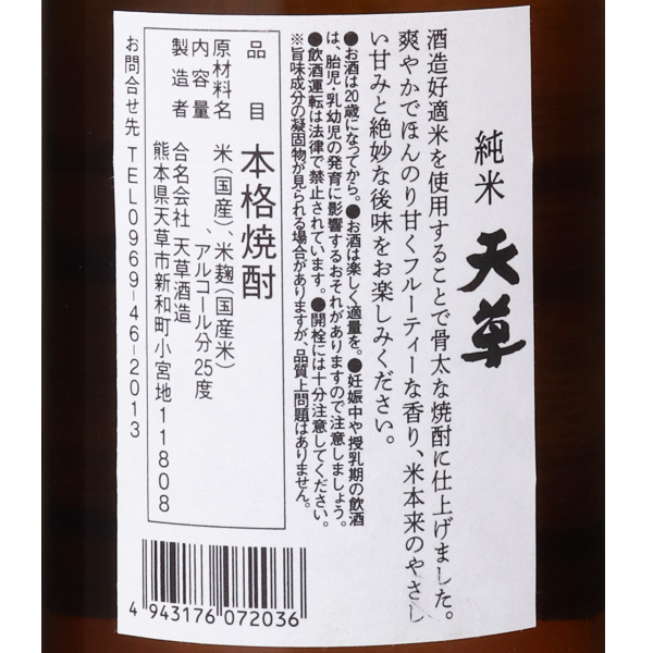 特酎 純米天草 米焼酎 25度 / 天草酒造