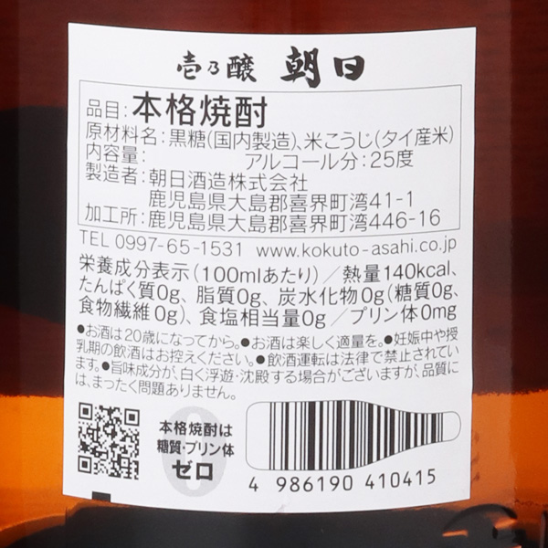 壱乃醸 朝日 黒糖焼酎 25度 / 朝日酒造