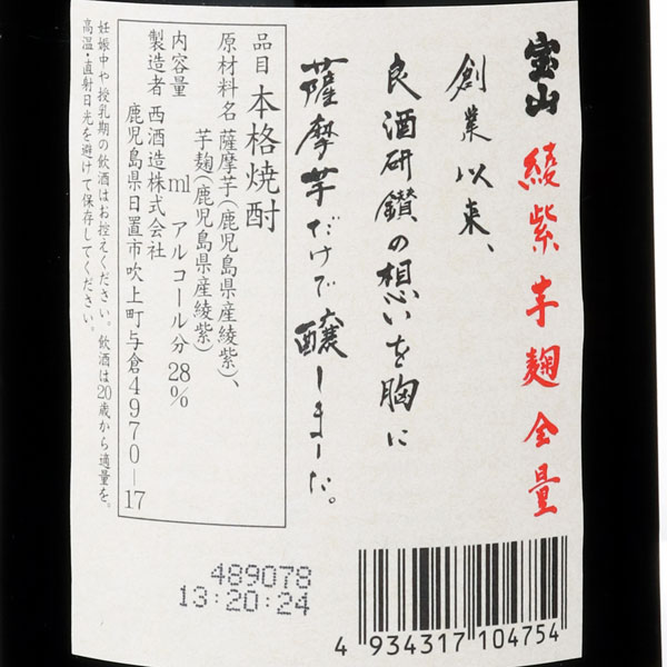 宝山 綾紫 芋麹全量 芋焼酎 28度 / 西酒造