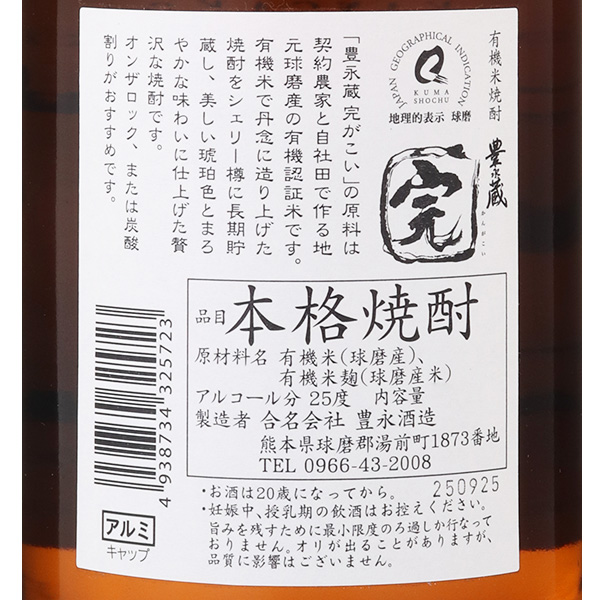 完がこい 樽熟成 米焼酎 25度 / 豊永酒造